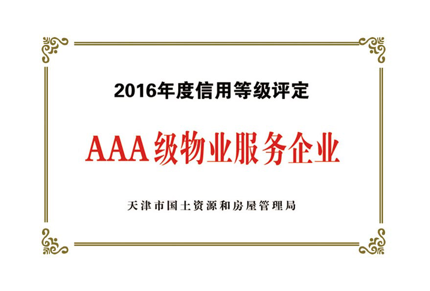 公司目前被授予:中國(guó)保安協(xié)會(huì)理事單位、物業(yè)管理綜合實(shí)力入圍企業(yè)、天津市物業(yè)協(xié)會(huì)理事單位、天津市保安協(xié)會(huì)常務(wù)理事單位、天津市保潔協(xié)會(huì)明星企業(yè)、天津市科技小巨人企業(yè)、天津市科技型企業(yè)、天津市物業(yè)管理企業(yè)優(yōu)秀項(xiàng)目經(jīng)理、企業(yè)信用評(píng)價(jià)體系A(chǔ)AA級(jí)企業(yè)、AAA級(jí)誠(chéng)信經(jīng)營(yíng)示范單位、AAA級(jí)重合同守信用單位、2017年被天津市工商業(yè)聯(lián)合會(huì)評(píng)為天津市民營(yíng)企業(yè)促進(jìn)就業(yè)百?gòu)?qiáng)企業(yè)、社會(huì)捐贈(zèng)百?gòu)?qiáng)企業(yè)、2018年銷售收入百?gòu)?qiáng)企業(yè),2020年被天津市退役軍人事務(wù)局評(píng)為天津市吸納退役軍人就業(yè)先進(jìn)單位。